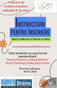 - Cum să te înscrii? Trimite formularul de înscriere până la data de 20 aprilie 2026, la adresa concurstraduceri2026@gmail.com